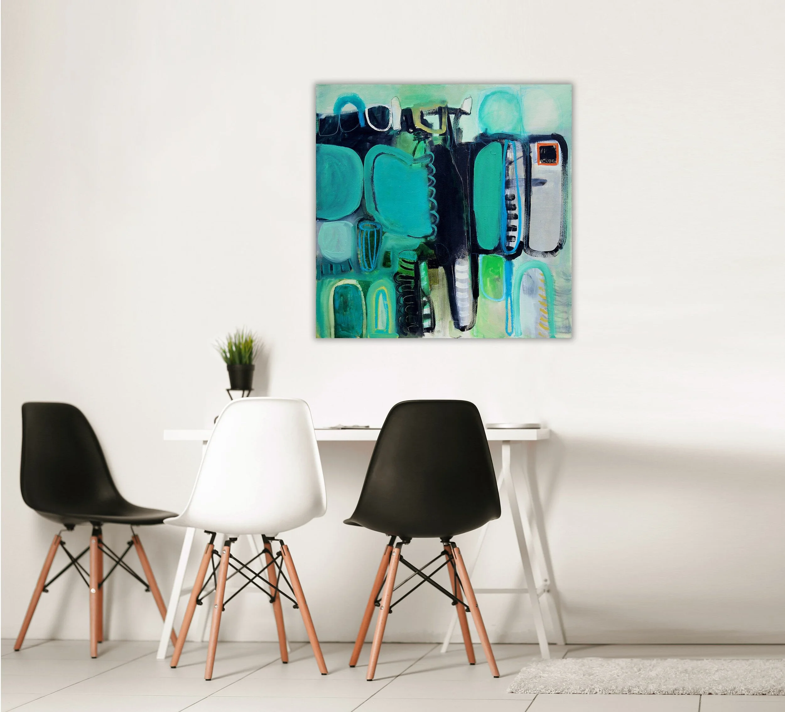 Original Abstract Painting, Large Teal Painting, Abstract Art, Modern Painting, Teal Decor. This is an original oil painting of an abstracted still life by me. Teals, blues, greens create a statement!