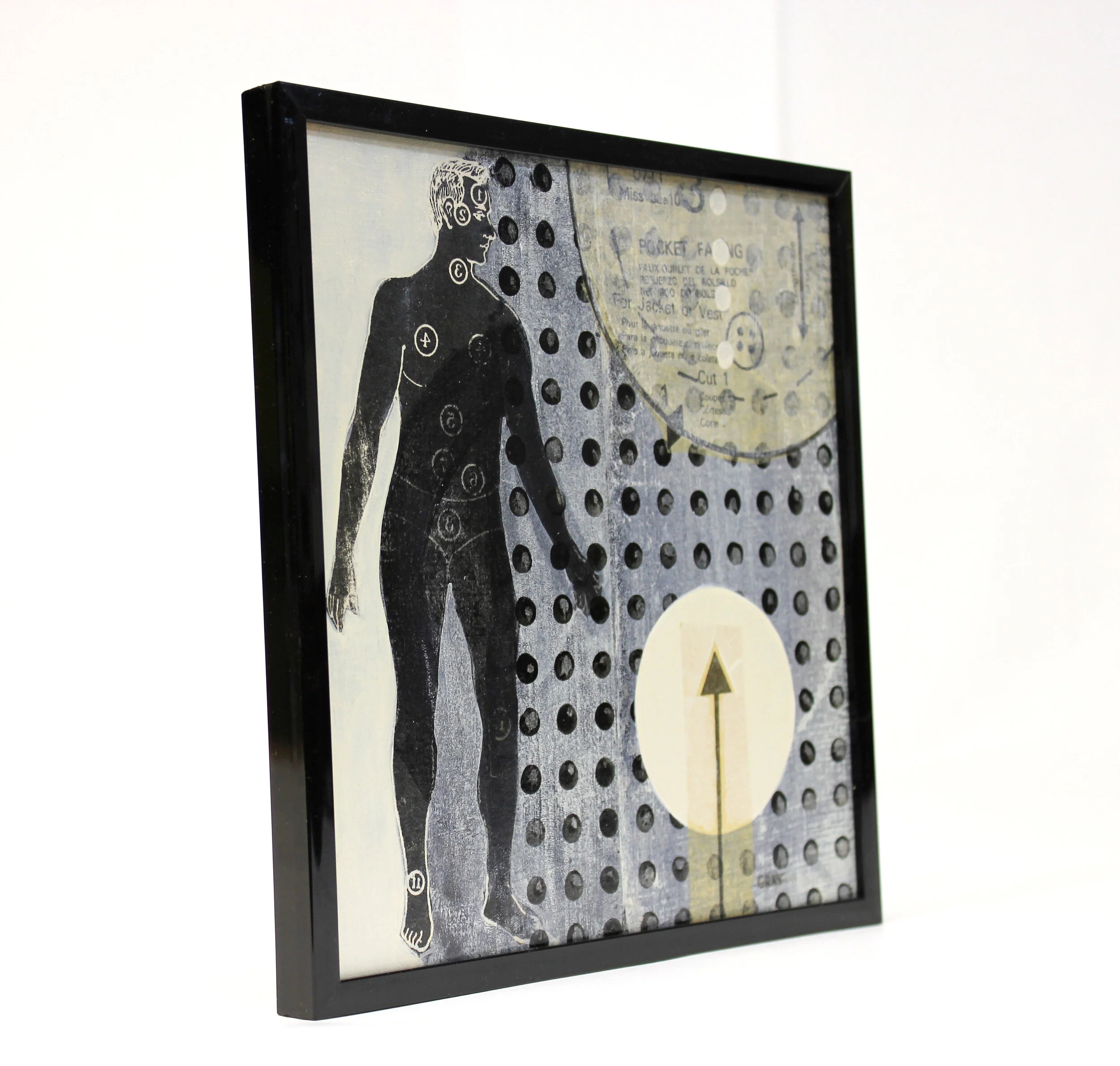 Original Modern Figure Mixed Media Painting, Small Black and White Painting Framed, Original Collage